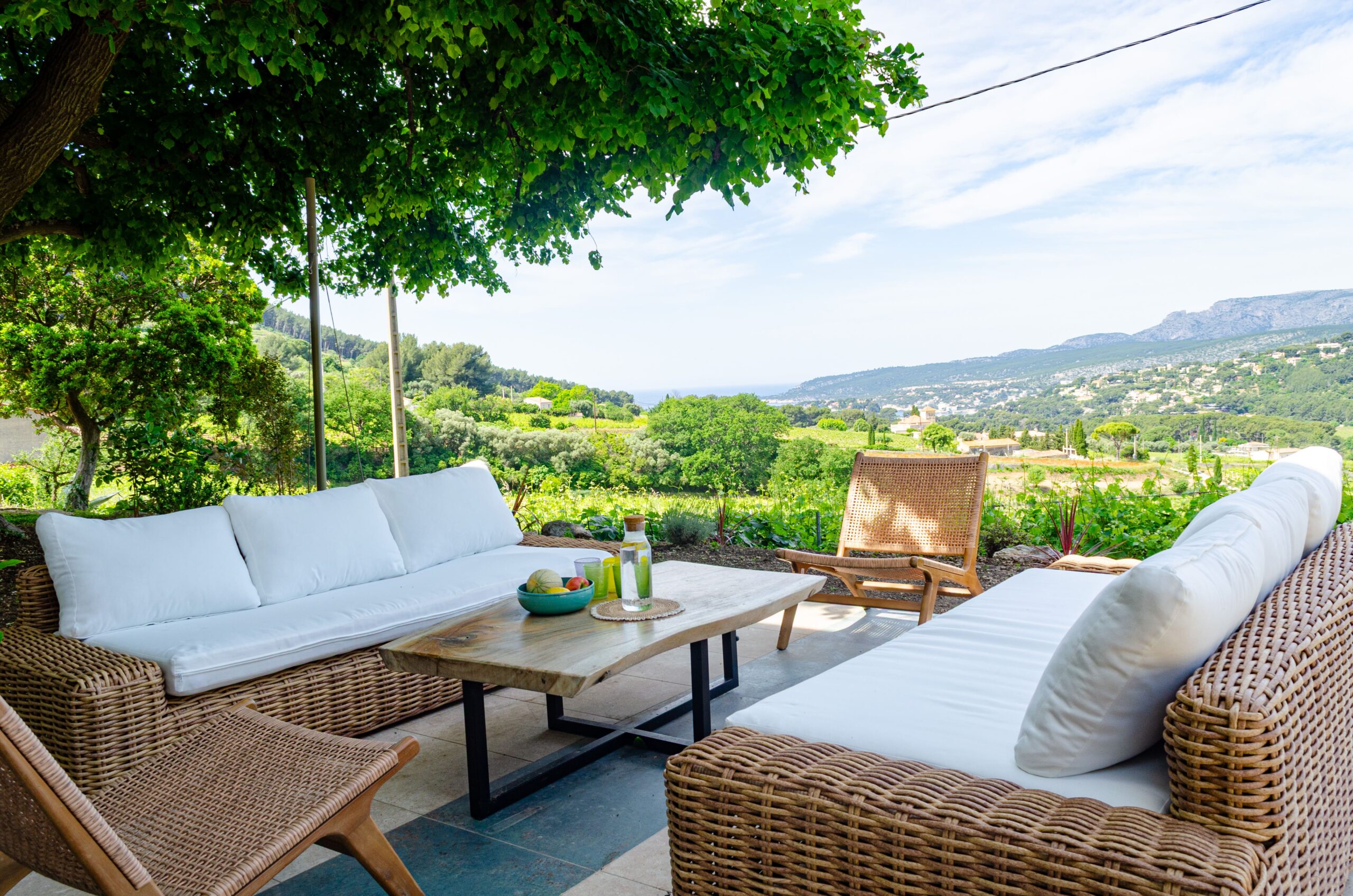 Vue panoramique sur les vignes et Cassis, accès au jardin et à la piscine